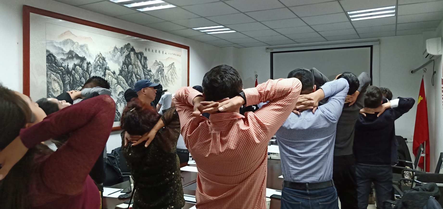 讲座中,李主任又现场教授大家有效预防颈椎病的健康养生操,大家认真学习,纷纷模仿!李主任告诉我们,“不要害怕疼痛,疼痛是良兆,是象征危险的信号,促使人们紧急行动,避险去害。”